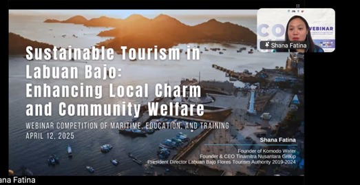 Pada tanggal 12 April 2025, Webinar Maritim diadakan secara daring melalui Zoom. Webinar ini fokus mengeksplorasi potensi wisata pantai, pulau, dan destinasi eksotis di Indonesia, sekaligus mengembangkan industri pariwisata yang berkelanjutan.